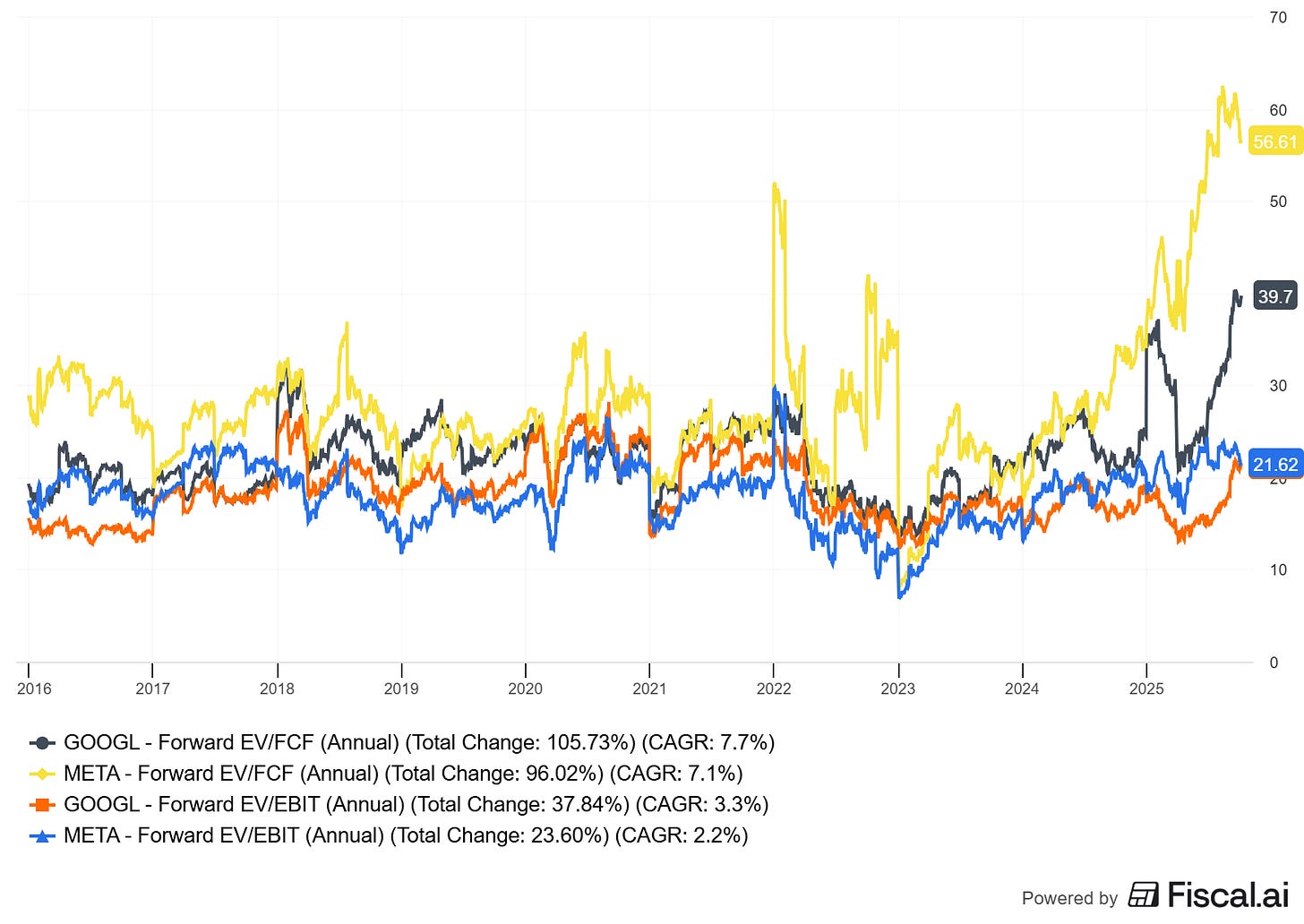 Cash-Mapping Multiples: Why EV/EBIT vs EV/FCF Diverge for Google and Meta