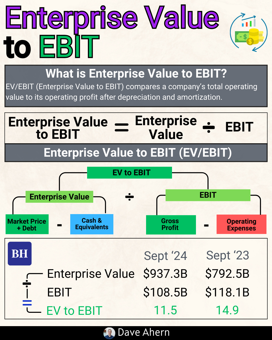 EV/EBIT anchors on operating earnings from the existing base. Useful when capex timing is noisy.
