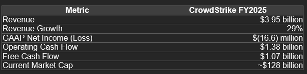 Notice the apparent contradiction: CrowdStrike shows a small GAAP net loss, yet generates over $1 billion in free cash flow. What gives?