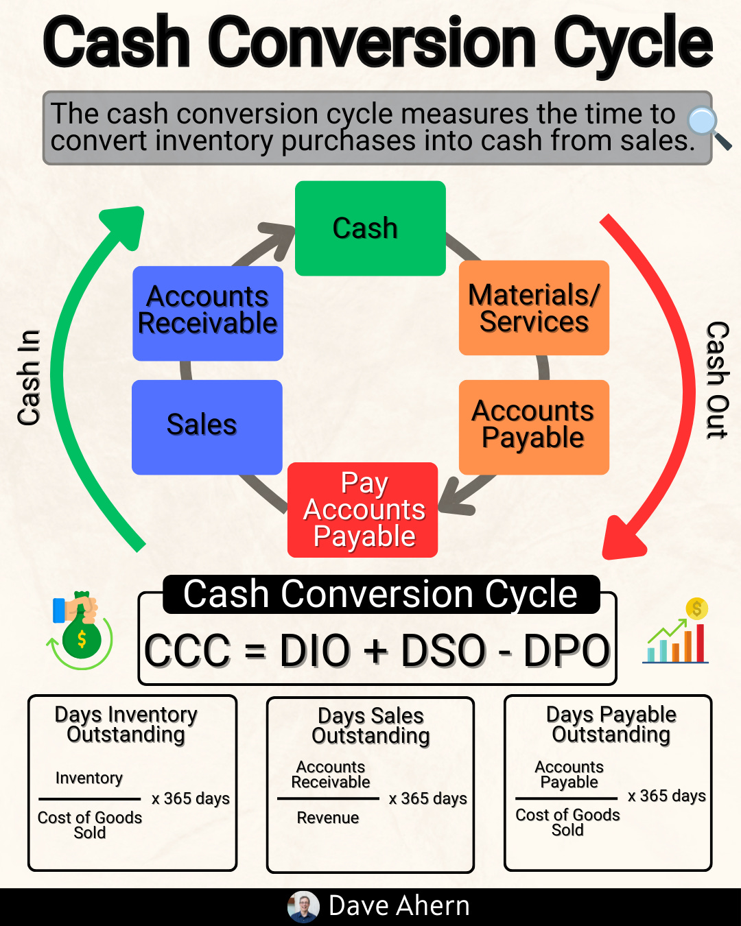 CCC measures how fast your operating model converts investments in receivables and inventory into cash, net of supplier financing (payables).