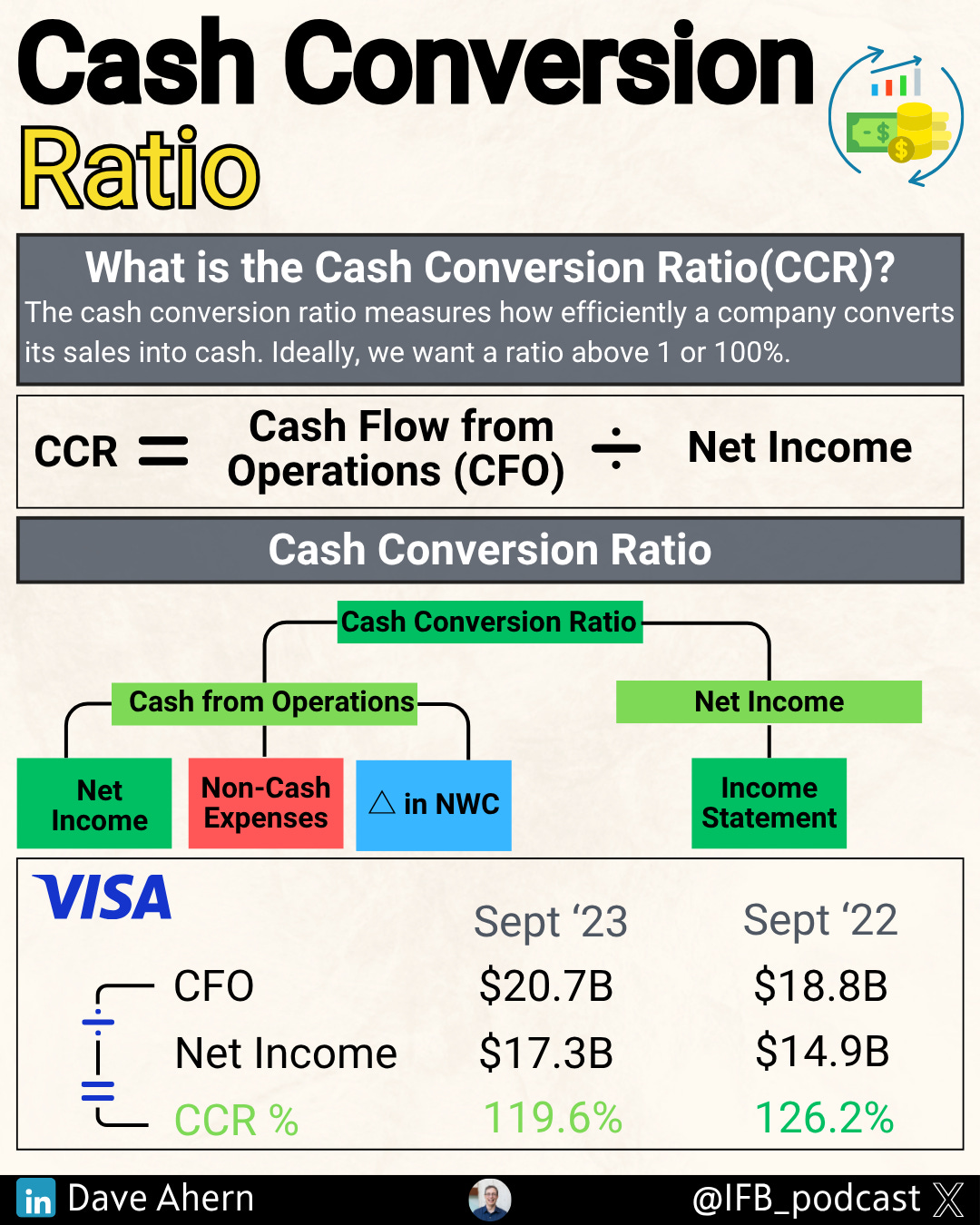 FCF conversion: FCF margin = FCF / Revenue. Track seasonality (Q1 often high).