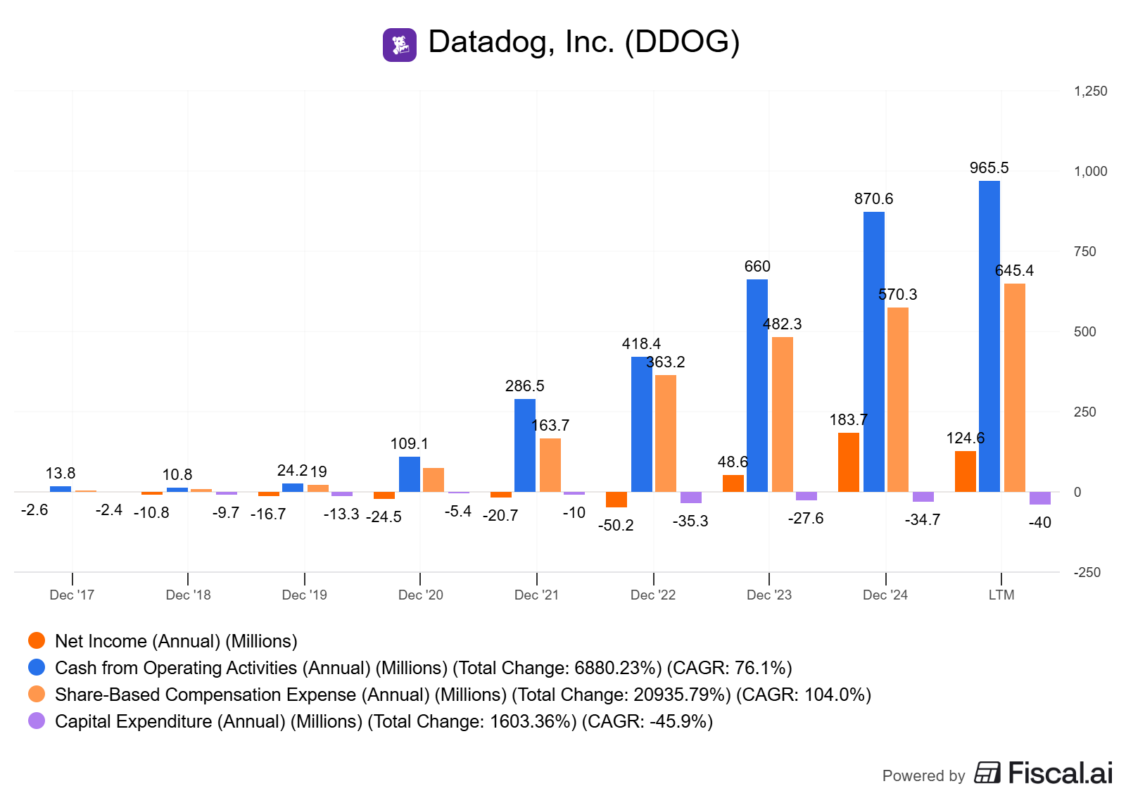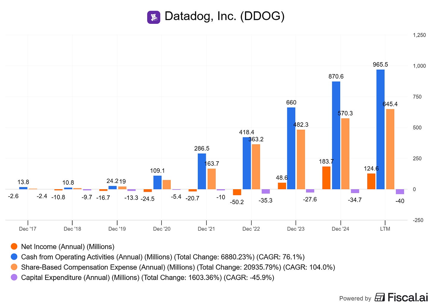 Today we use Datadog to map accounting to economics: how usage-based pricing combines with data gravity and multi-product adoption to create durable, per-share value.