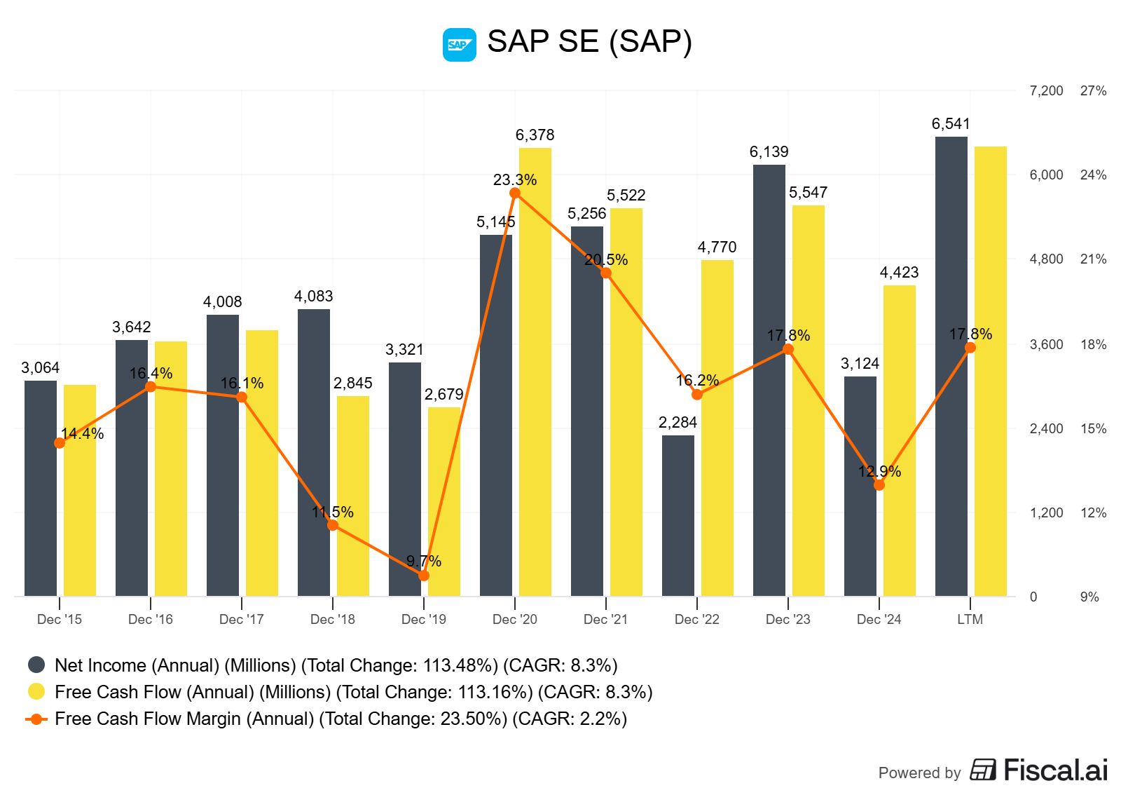 Cloud revenue trends are strong, but the quality test is conversion into free cash flow and owner earnings. SAP’s H1 FCF increase was driven by higher profitability and working capital tailwinds, including lower restructuring and SBC payouts SAP IR, Jul 22, 2025.